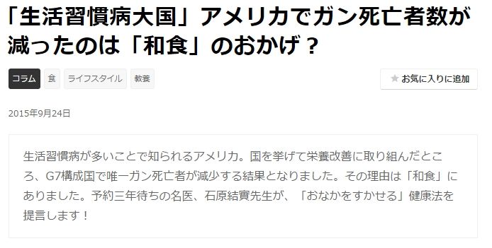 アメリカでガン死亡者数が減ったのは「和食」のおかげ?