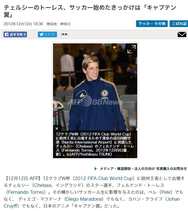 チェルシーのトーレス、サッカー始めたきっかけは『キャプテン翼』