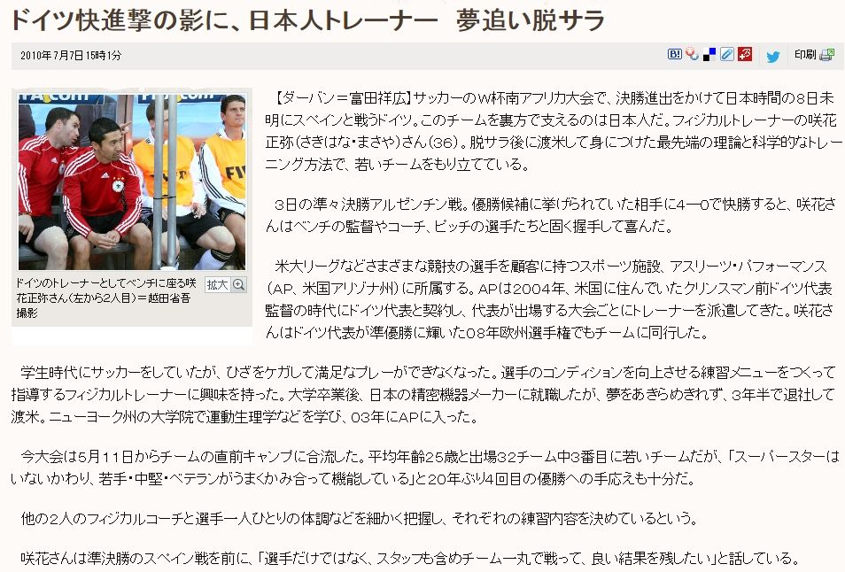 ドイツ快進撃の影に、日本人トレーナー