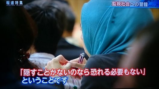 テロ対策の名のもとに監視され、何かをしたわけでもないのに「計画したな」と言われて逮捕。自分自身は何もしてないのに、計画した組織に関わっていただけで逮捕。共産党も日弁連も、政府方針に逆らえば監視されて、何か言いがかりをつけられて逮捕。