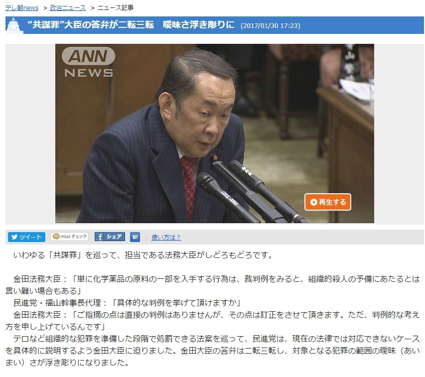 そもそも、担当の金田大臣が、テロを準備した段階で現行法で対処できない事例があるのか問われ、答えられなかったという事実が存在するのです。金田大臣は、「判例を見ると、現行法で対処できないものがある」と答えておきながら、「具体的な判例を教えてくれ」と言われたら「判例はありません」と答えるという、超絶アクロバティックな答弁を見せています。これでテロ対策だという政府の答弁を信じる人は、よっぽどのお人好しでしょう。