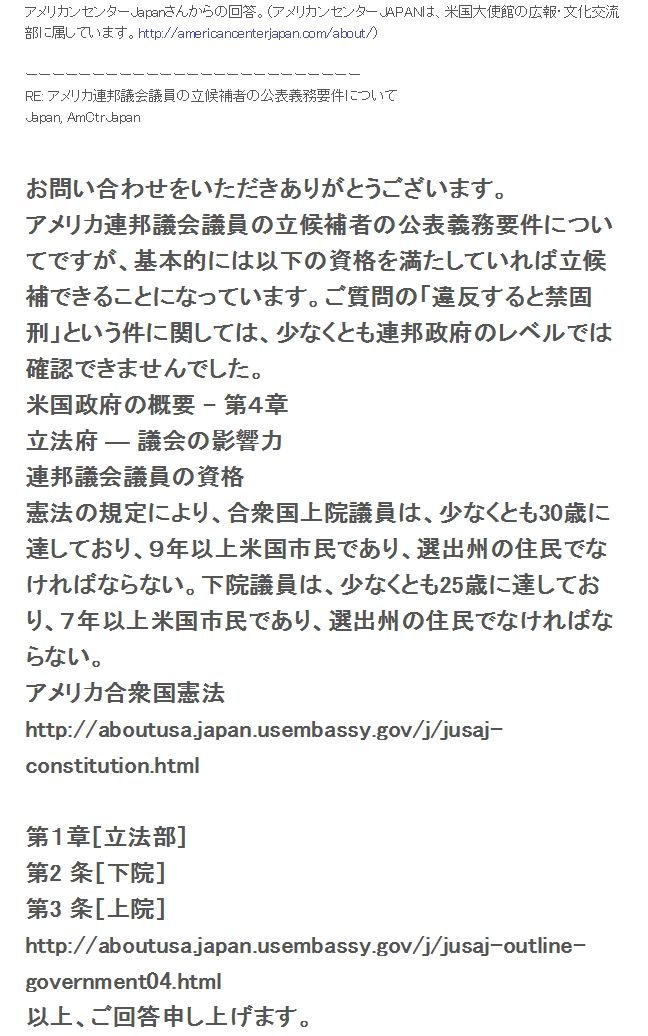 - 「アメリカでは4代にわたって出自を公表しなければ国会議員になれない」は井上太郎が流したデマ。
