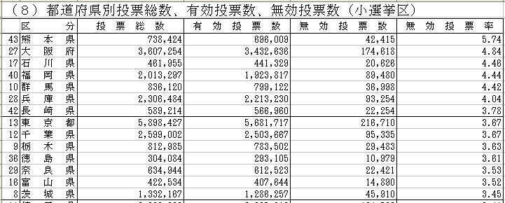 ・これを「異常な無効票の割合」などと言って煽るような奴の言うことは、信じる価値ゼロ