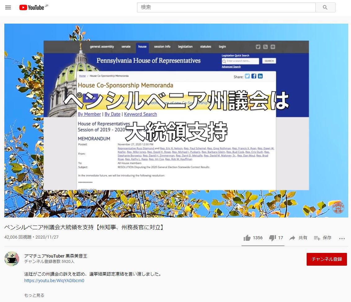 ↑「ペンシルベニア州議会は大統領支持」とするデマ動画
