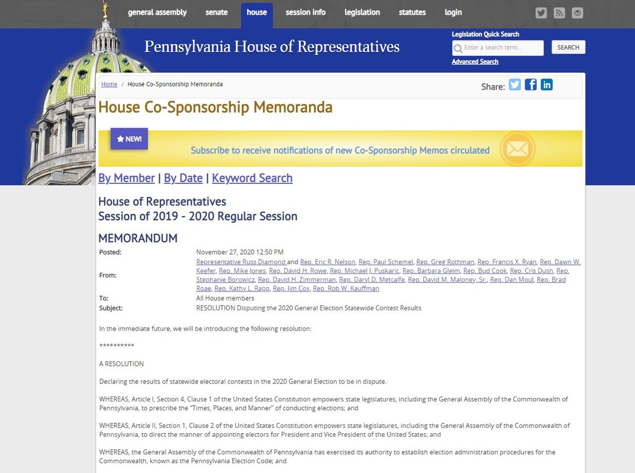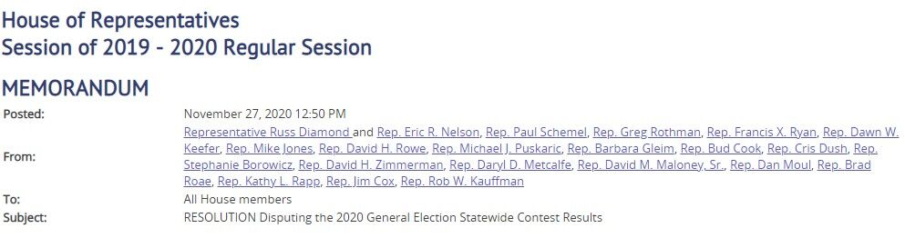 - 実際はペンシルベニア州下院で共和党員20人ほどが、選挙を無効にする提案をしただけ
