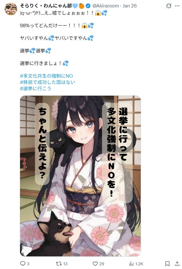 如何なる意見を持っていようが、事実に基づいて発言せねばなりません。本来、デマの拡散を防ぎ、事実に基づいた政治を行うことが求められる政治活動化が、このような差別デマを積極的に垂れ流す。参政党は日本政治に害以外何一つないゴミです。