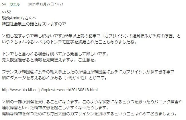 >>韓国産キムチにカプサイシンが多すぎる事で