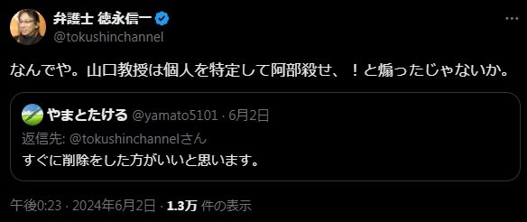 - 「法政大教授の山口教授が『安部殺せ』と言った」というのはデマ。